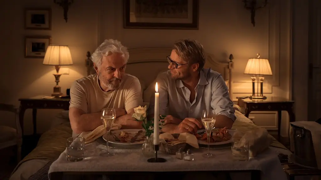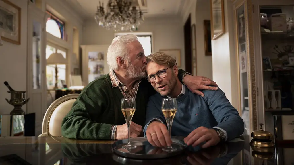 Maarten (Leo Alkemade) en Hans (Huub Stapel) reizen door de champagnestreek in deze ontroerende film over familiebanden.